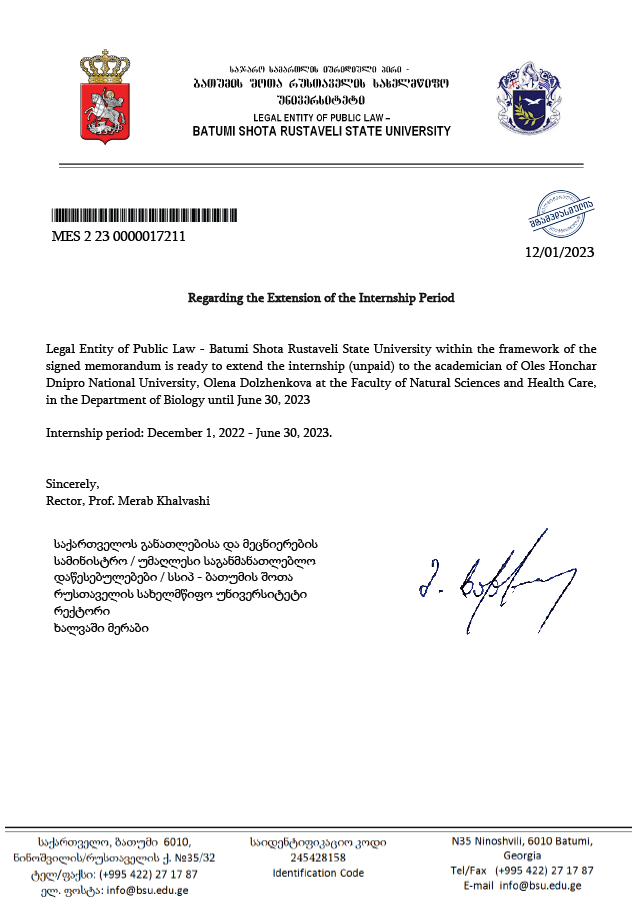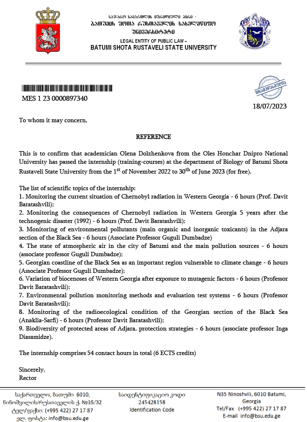 5. Тренінг з обміну досвідом щодо онлайн-навчання у Державного університету імені Шота Руставелі (м. Батумі, Грузія) з 01.12.2022 р. до 30.06.2023 р.MES 1 23 0000897340 18/07/2023. Identification Code 245428158– 6 кредитів.
