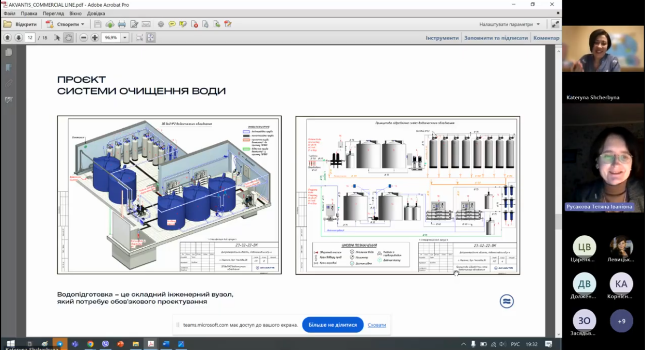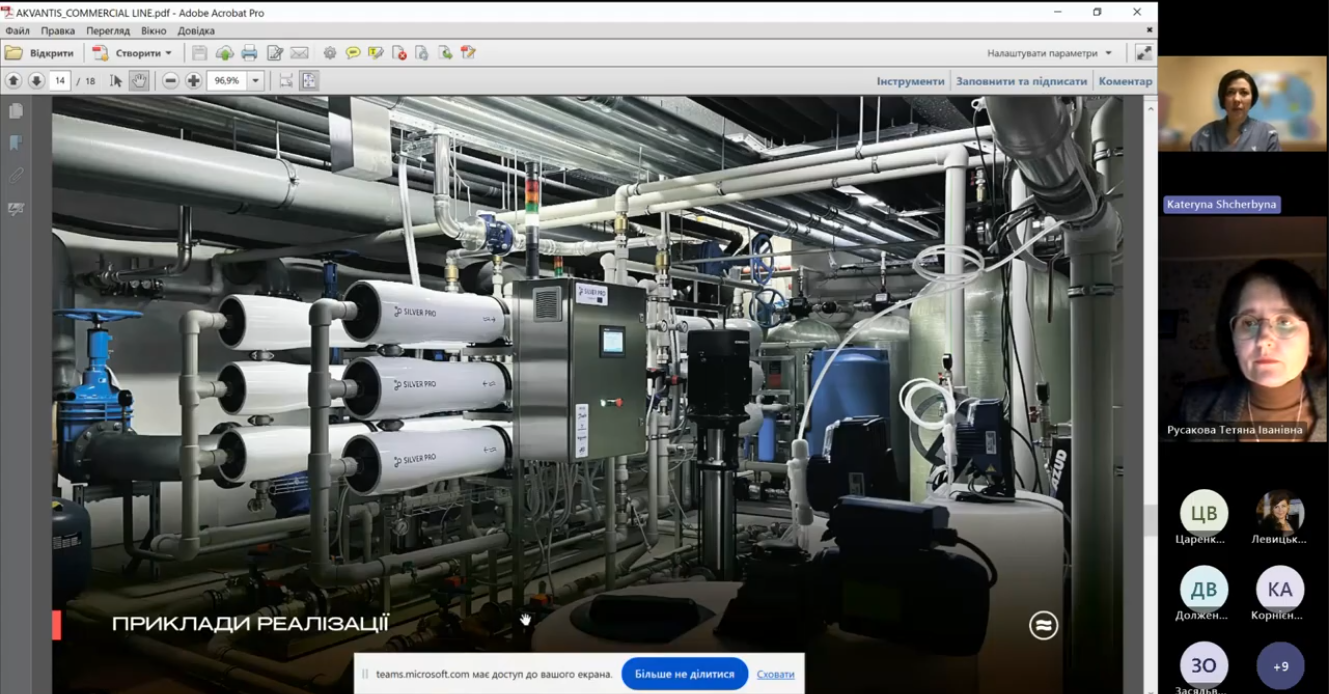 12 грудня 2024 року відбулася зустріч студентів та викладачів кафедри безпеки життєдіяльності із Катериною Сергіївною Щербиною, головним спеціалістом проєктного відділу компанії AKVANTIS – іноваційні системи очистки води. Ця компанія працює в Україні з 2008 року, на сьогодні займається розробкою проєктів та встановленням водоочисного обладнення, співпрацює з іноземними компаніями та виробниками фільтрових водоочисних систем, є потенційним стейхолдером для освітньої програми Екоаналітика та техногенна безпека спеціальності 183 Технології захисту навколишнього середовища. Катерина Сергіївна поділилася власним досвідом зі студентами про свій особистий шлях в компанії після закінчення навчання в Університеті в 2005 році за спеціальністю Екологія та охорона навколишнього середовища, від консультанта до головного спеціаліста. Наголосила на важливості постійного навчання, вдосконалення професійних навичок, підвищення рівня іноземної мови, як англійської так і німецької.