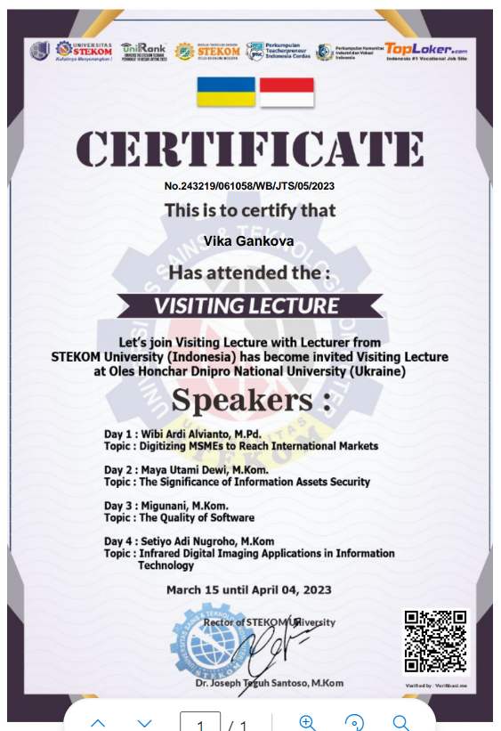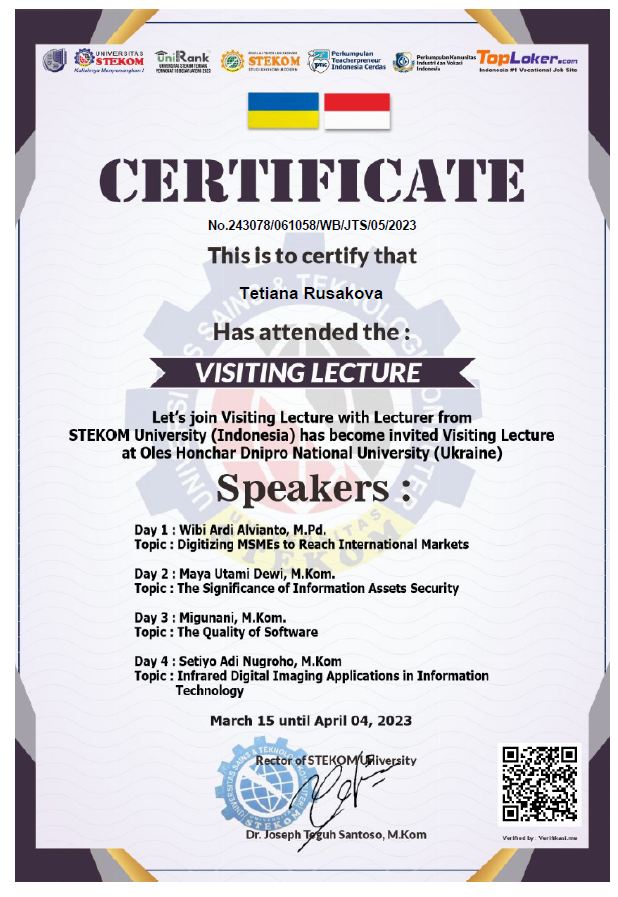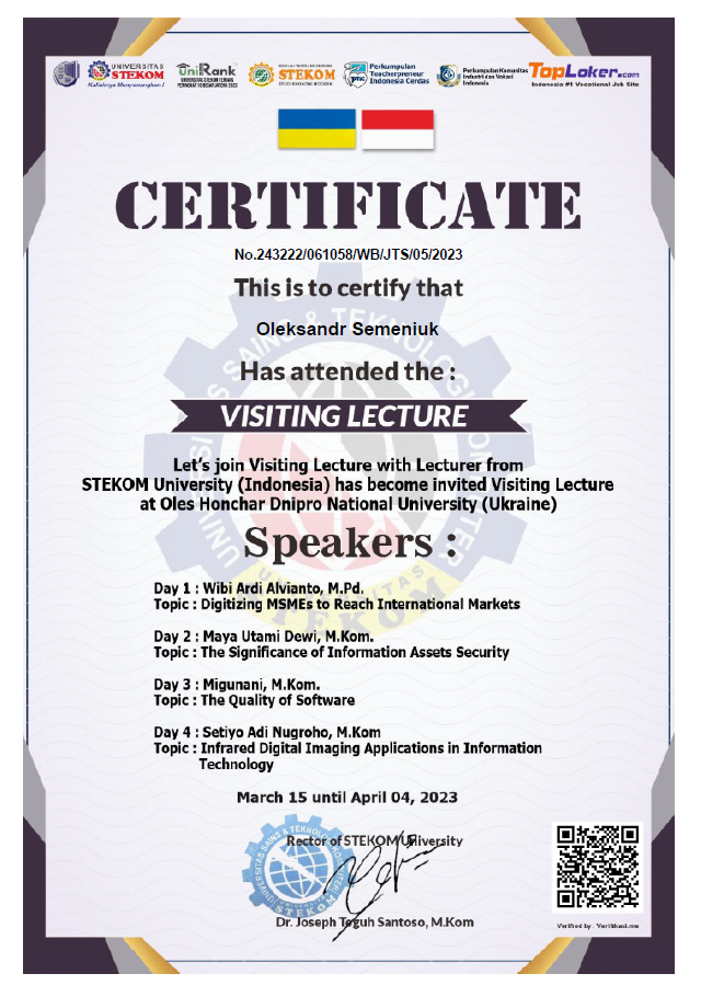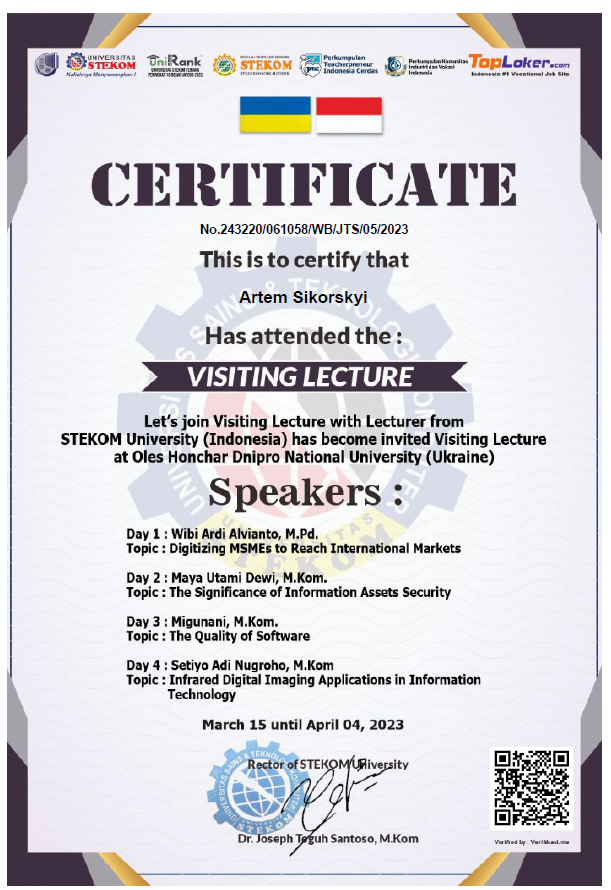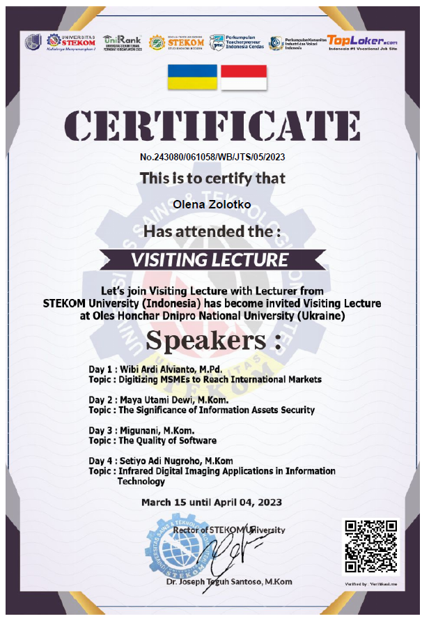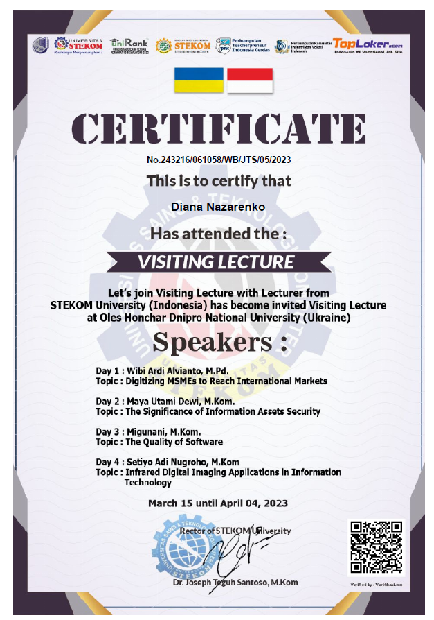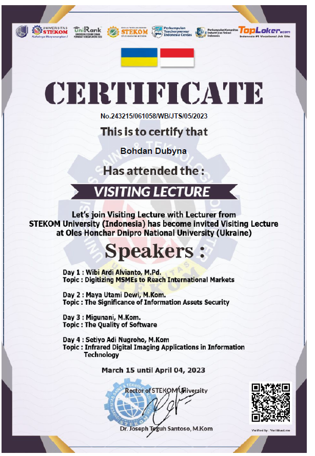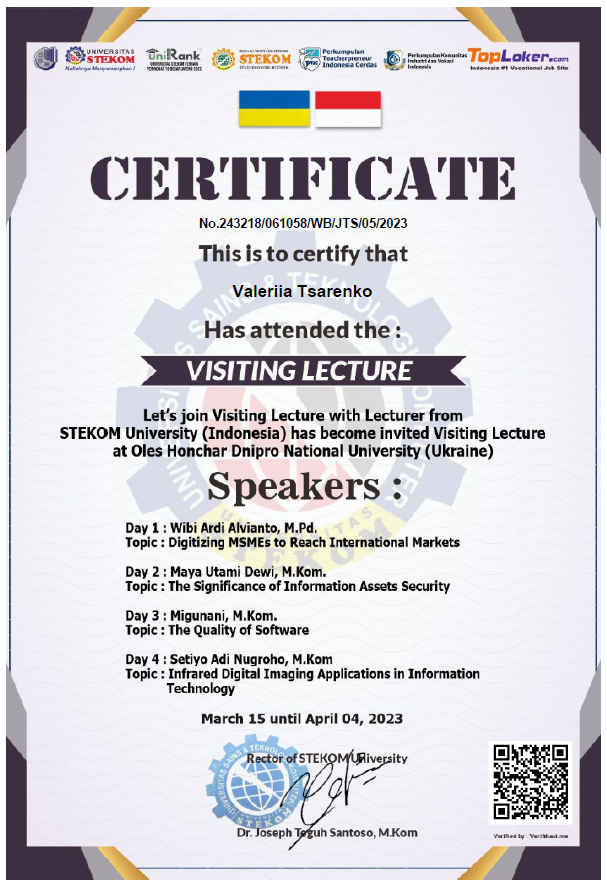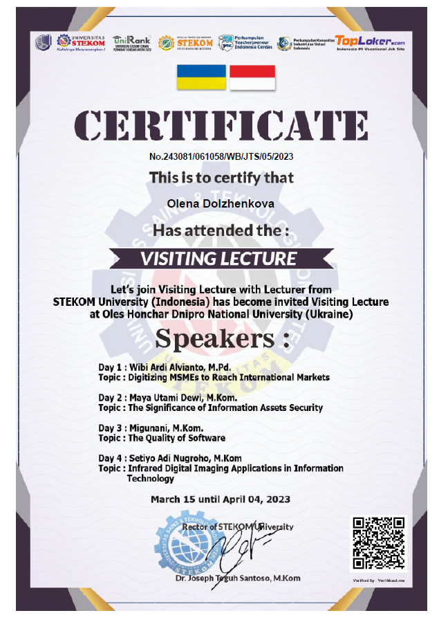 1. Guest lectures delivered by distinguished representatives of STEKOM University (Indonesia) at Oles Honchar Dnipro National University